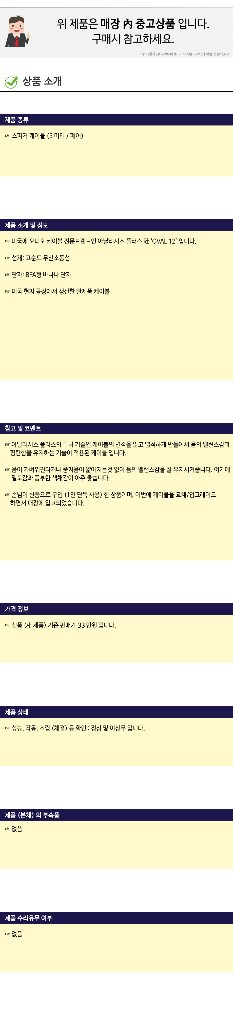 [중고상품] 아날리시스플러스 (ANALYSIS PLUS) OVAL 12 스피커케이블