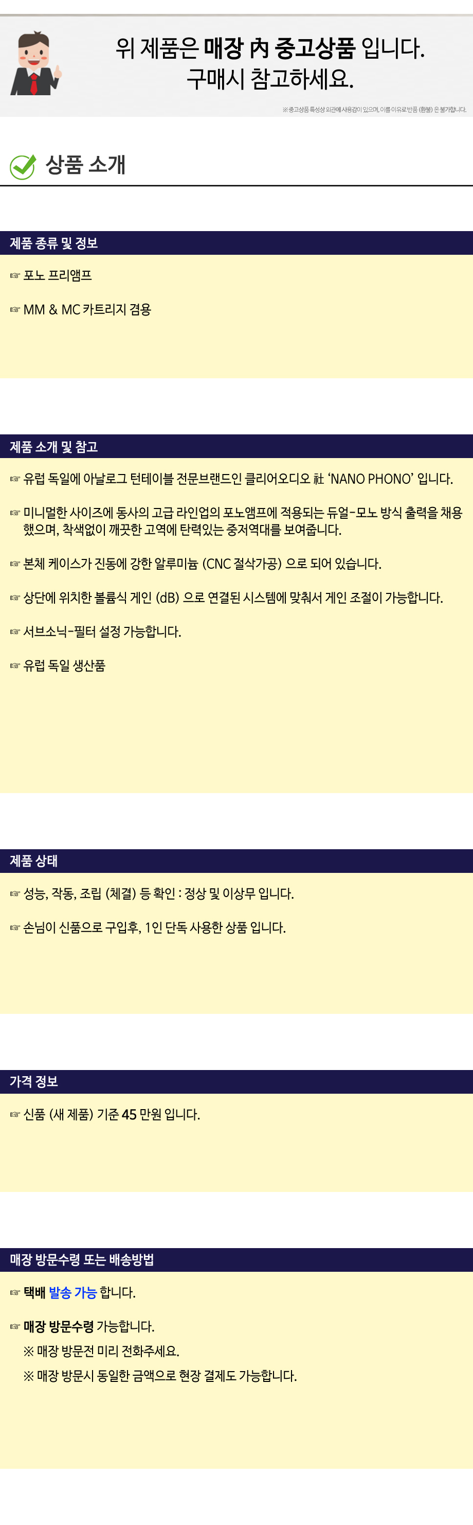 [중고상품] 클리어오디오 (CLEARAUDIO) MM MC 겸용 포노앰프 (NANO PHONO)
