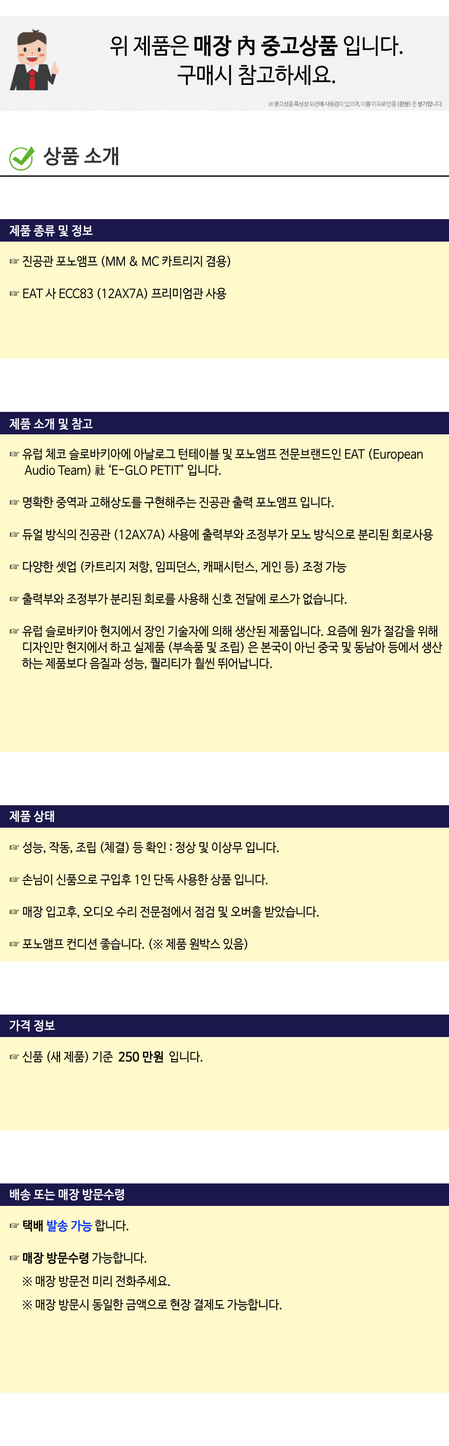 [중고상품] 유로피언오디오팀 (EAT) MM MC 겸용 진공관 포노앰프 (E-GLO PETIT)