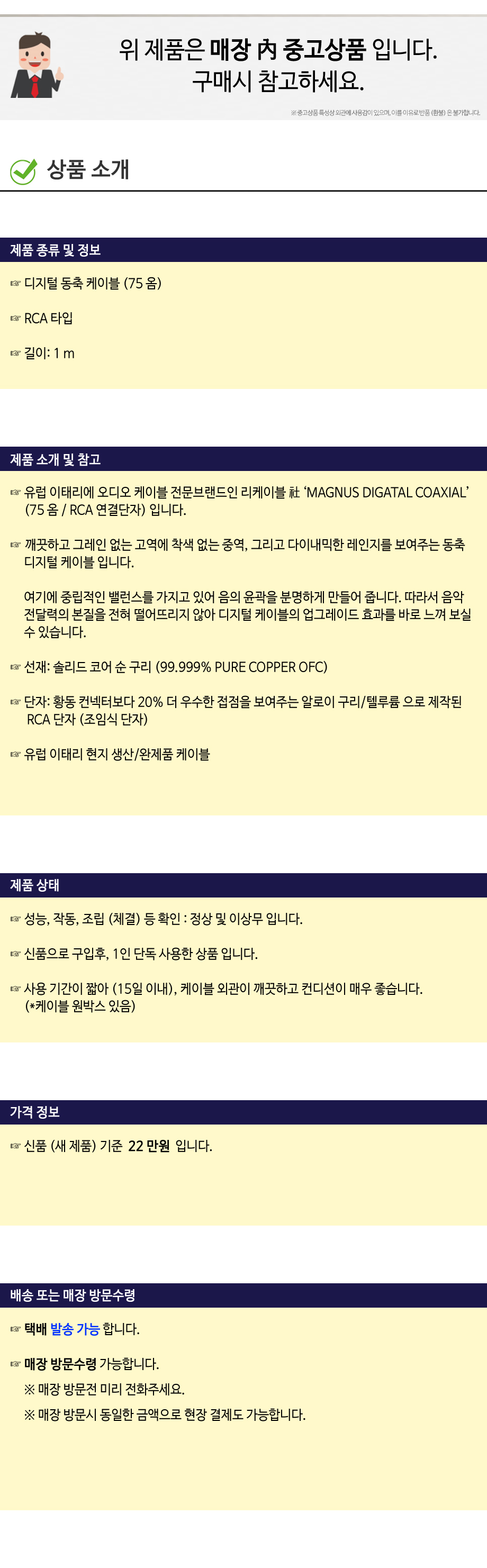 [중고상품] 리케이블 (RICABLE) 디지털 동축 케이블 (MAGNUS COAXIAL)