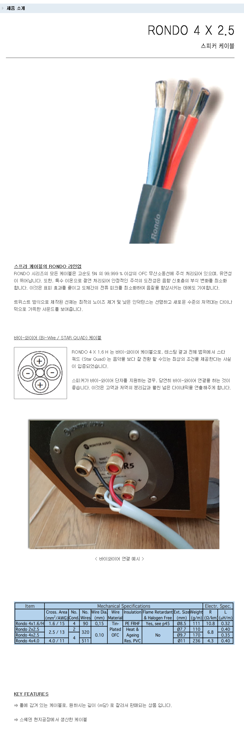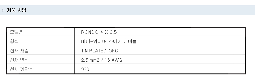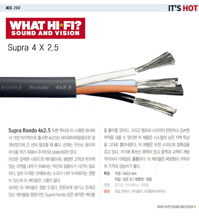 수프라케이블 (SUPRA CABLE) 바이-와이어링 스피커 케이블 (RONDO 4 X 2.5)