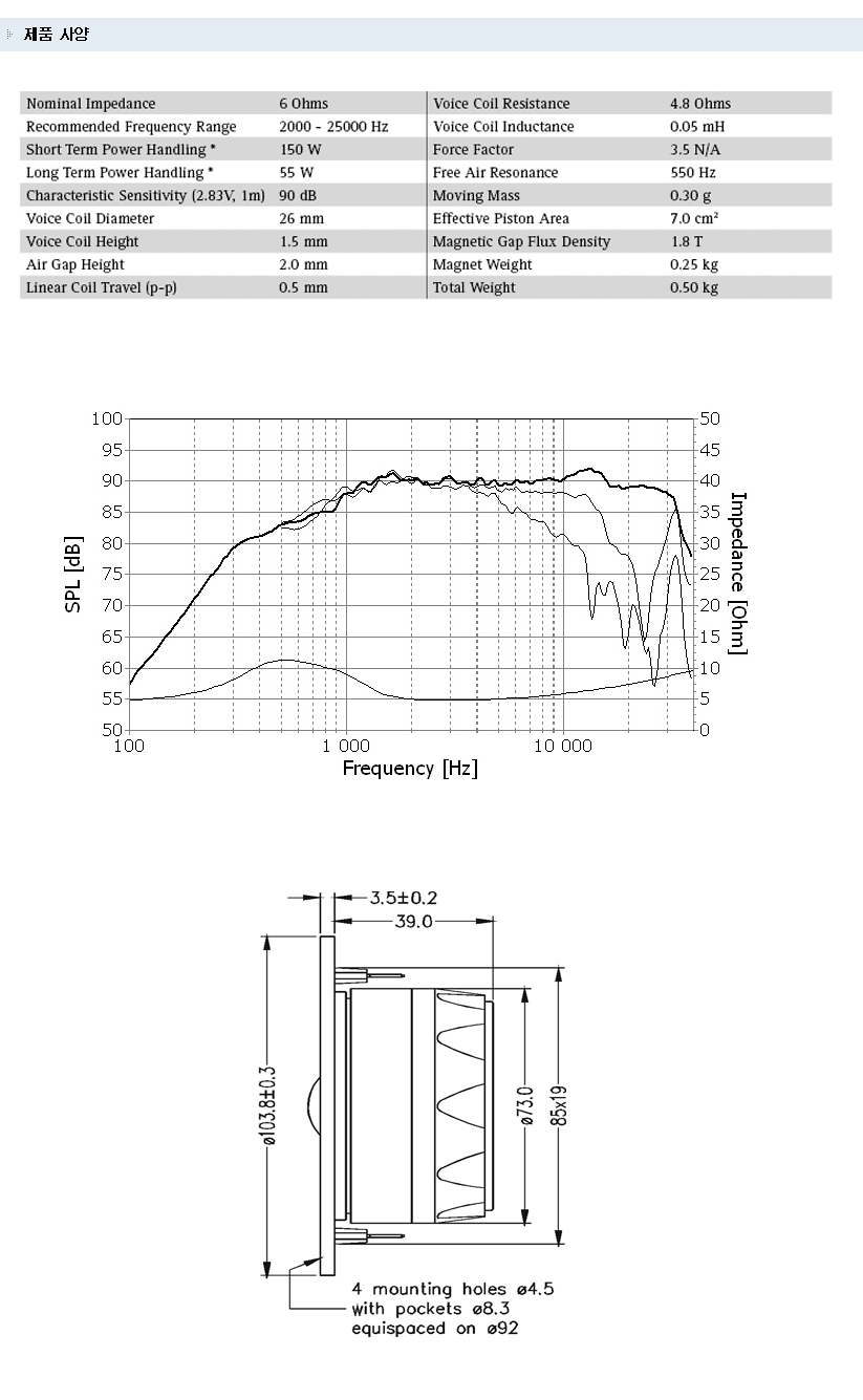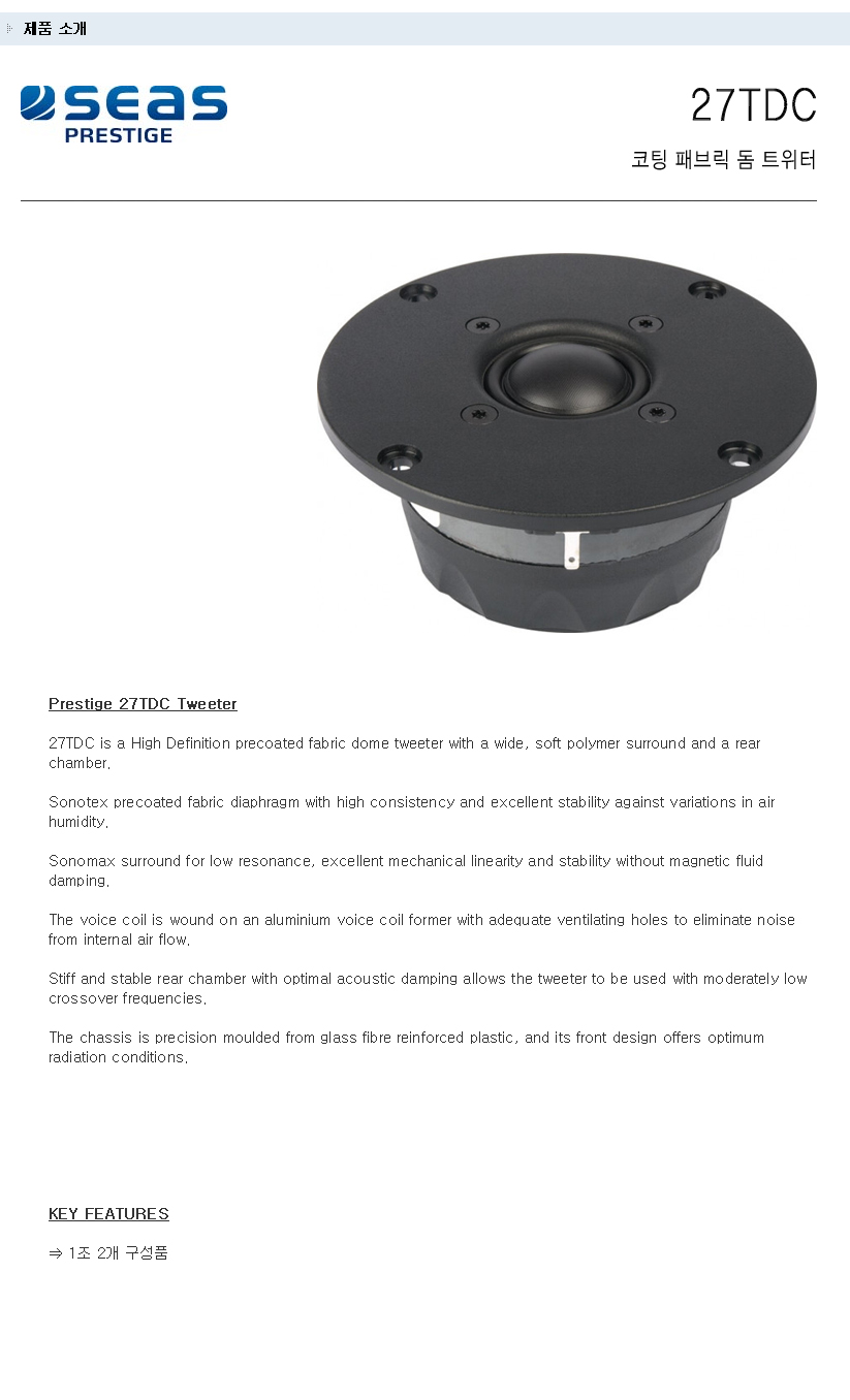 현재 위치 : Home > ▶ 스피커 유닛 (트위터 & 우퍼) > [SEAS - PRESTIGE 트위터]
