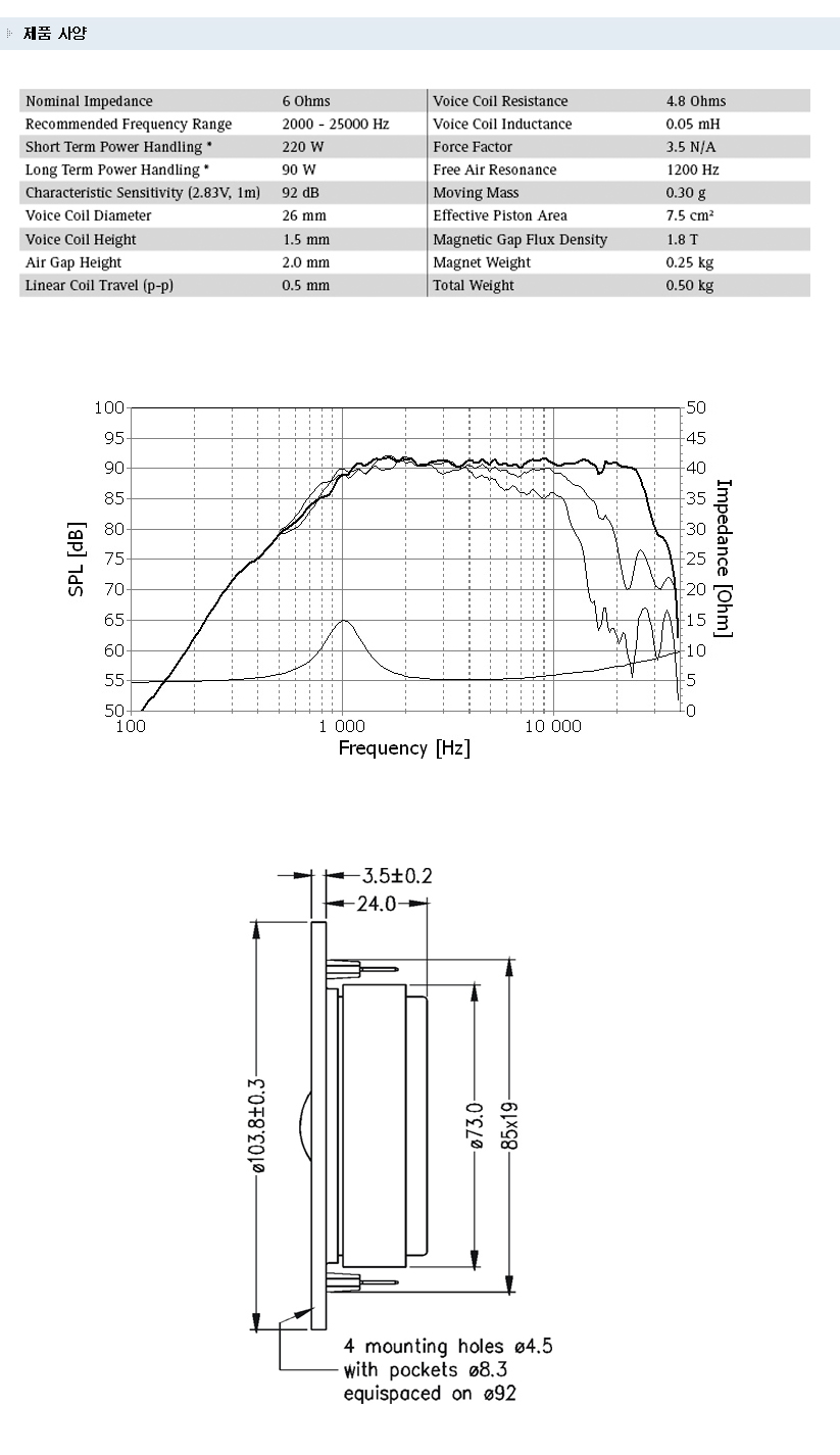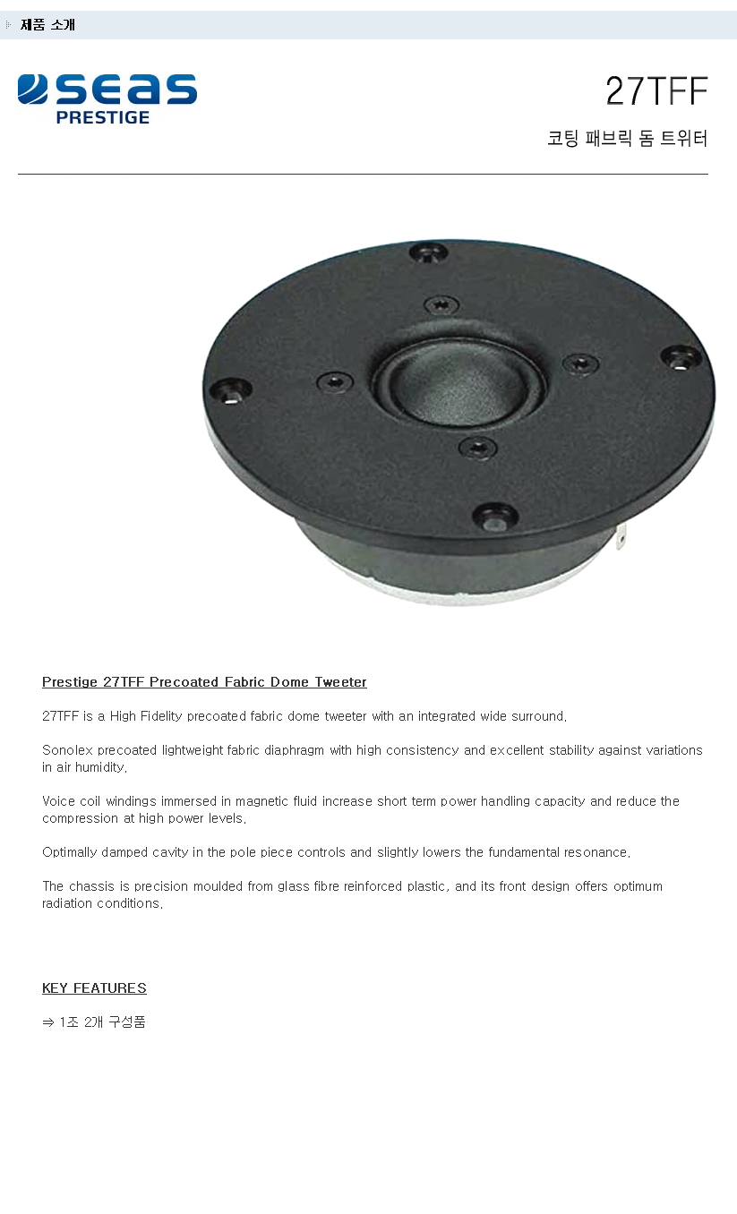 | 현재 위치 : Home > ▶ 스피커 유닛 (트위터 & 우퍼) > [SEAS - PRESTIGE 트위터] |