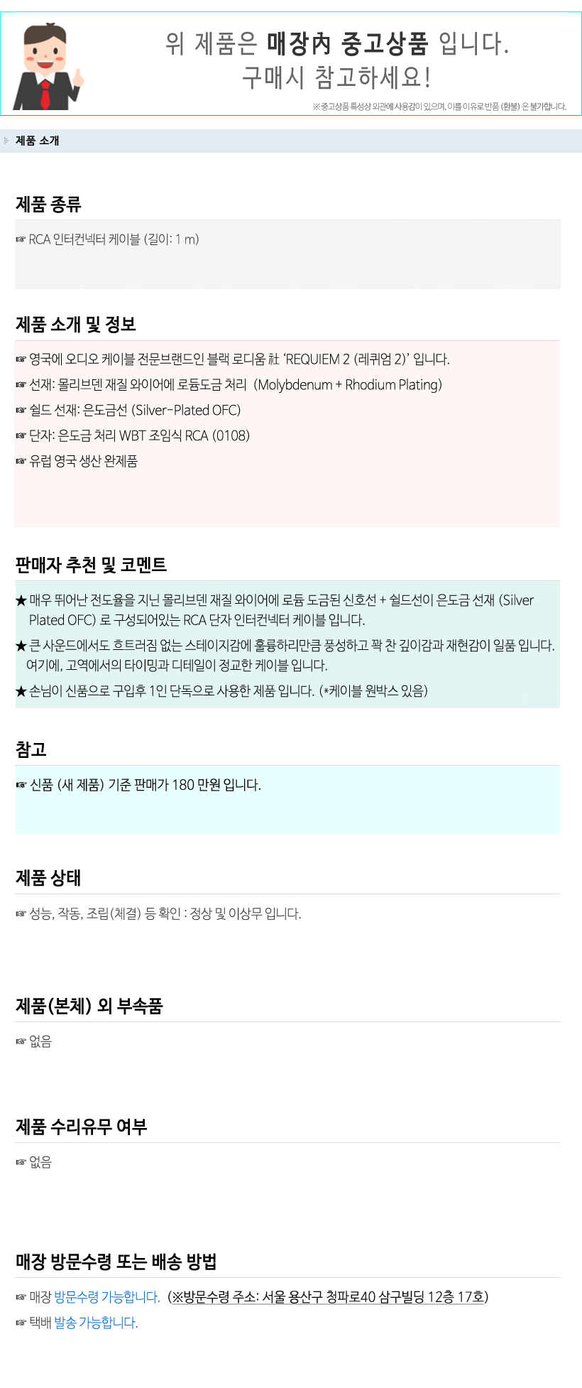 [블랙 로디움] REQUIEM 2 | RCA 인터컨넥터 케이블 | 중고상품