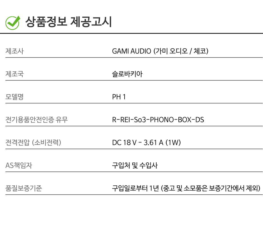 GAMI AUDIO [가미오디오] 포노 프리앰프 (PH 1)