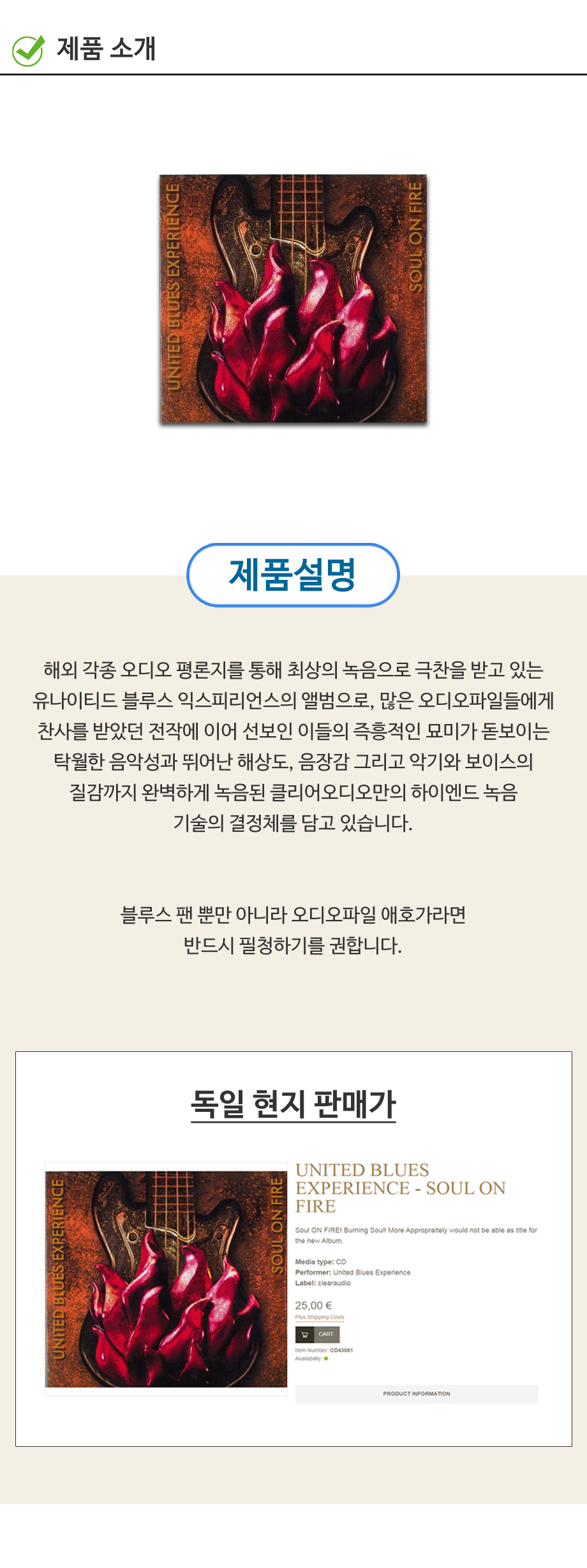 클리어오디오 (CLEARAUDIO) CD 음반 (UNITED BLUES EXPERIENCE - SOUL ON FIRE)