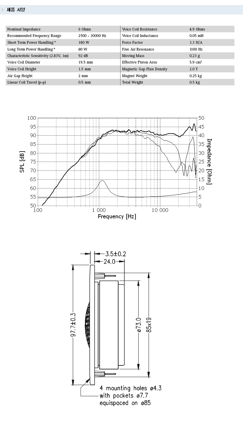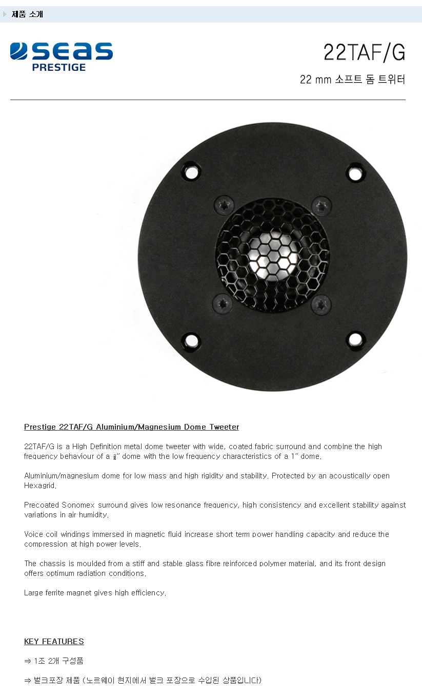 현재 위치 : Home > ▶ 스피커 유닛 (트위터 & 우퍼) > [SEAS - PRESTIGE 트위터]