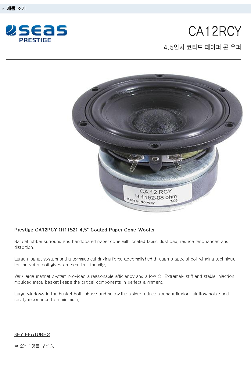 현재 위치 : Home > ▶ 스피커 유닛 (트위터 & 우퍼) > [SEAS - PRESTIGE 우퍼]