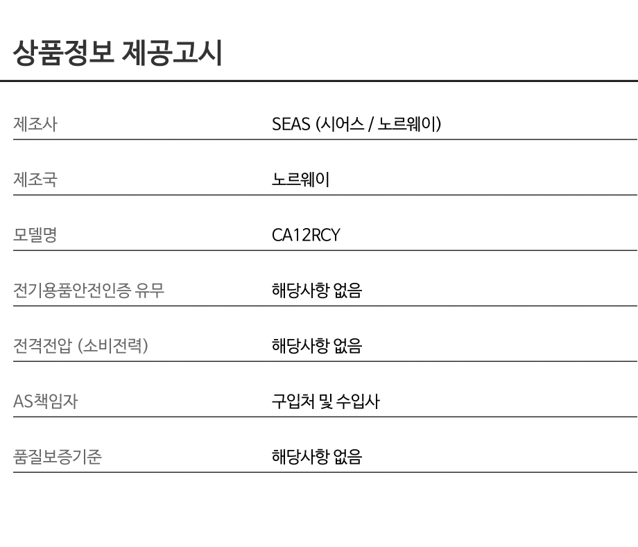 [SEAS] CA12RCY | 우퍼 | 1조 2개 구성품