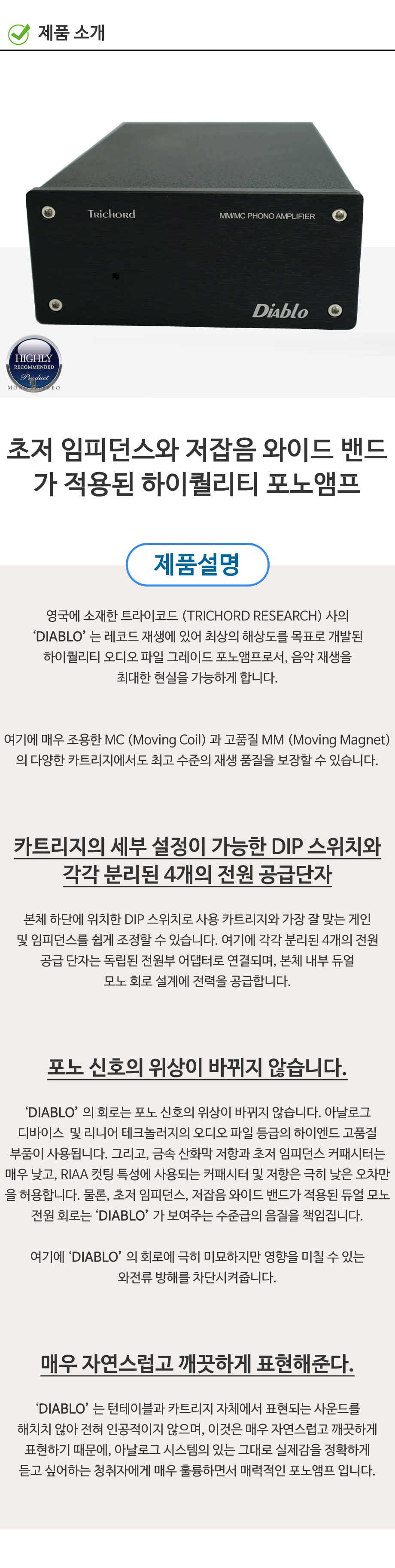 트라이코드 (TRICHORD) DIABLO 디아블로 포노앰프